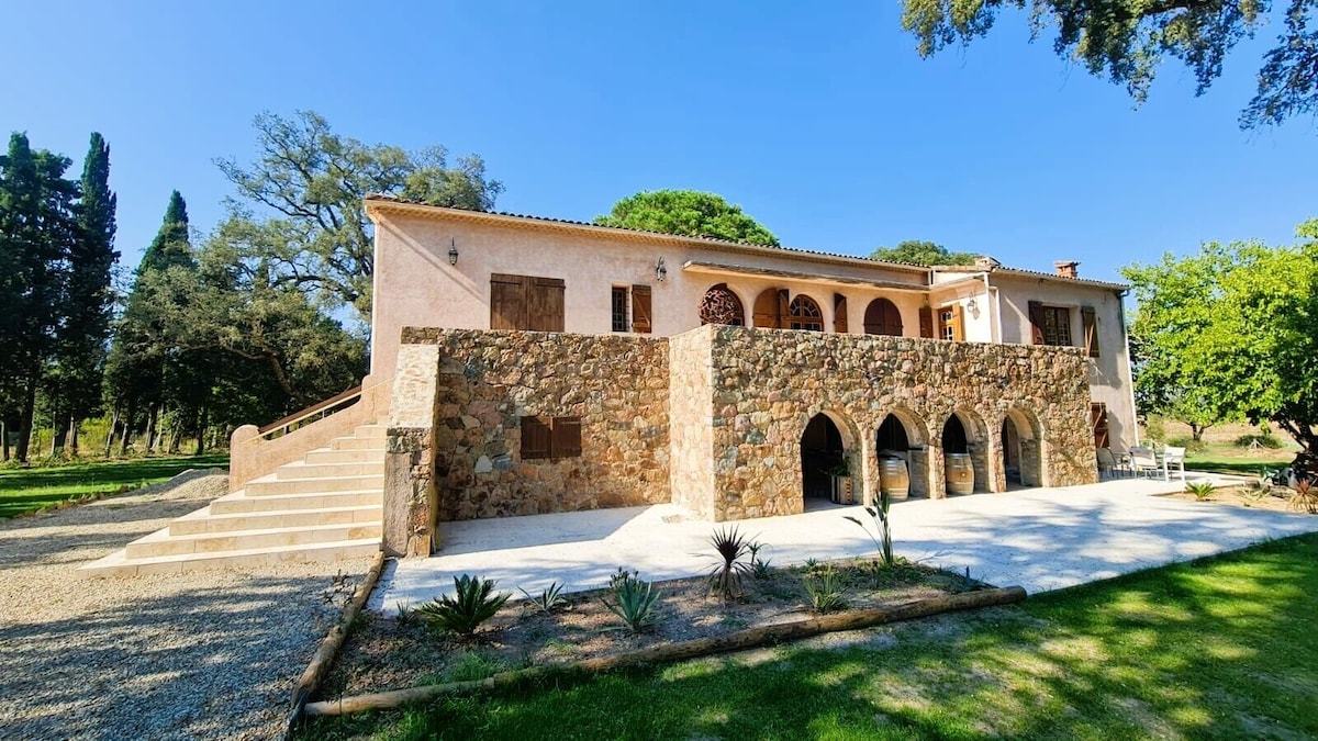 Entouré d’un écrin de verdure d’un hectare, entièrement clôturé, vous profiterez de magnifiques arbres centenaires, d’espaces de détente ombragés et d’une piscine extérieure.
